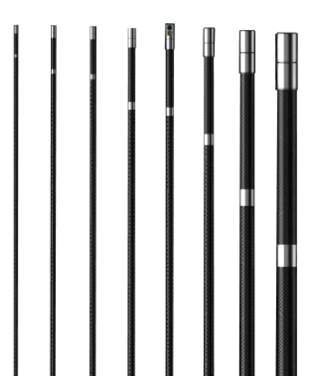 Sondas articuladas de tungsteno con diámetros desde 1.1 mm y cobertura de hasta IP67. Alta maniobrabilidad para inspecciones complejas.